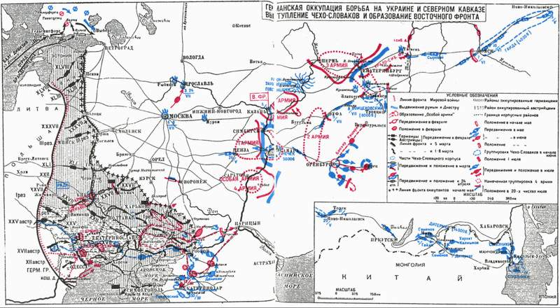 «Установление Южного фронта носило более замедленный и незаметный характер, являясь непосредственным результатом германской оккупации юга России, чем Восточного фронта.